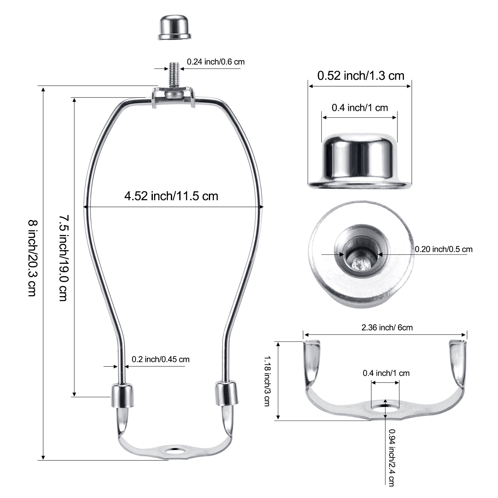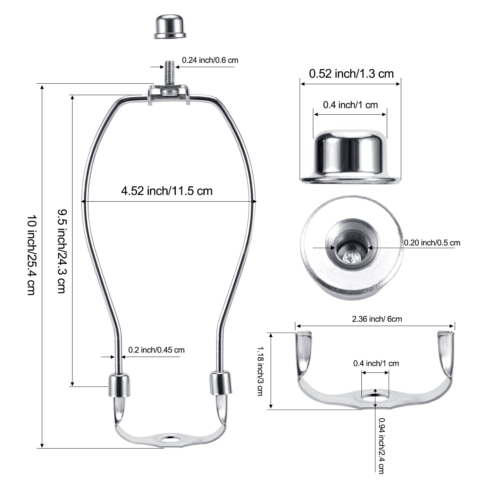 - ②【SIZE OF LAMP HARP KIT】Diameter of iron wire: 0.18 inch; Diameter of Saddle base hole: 0.4 inch; Please carefully compare detailed size of harp on the picture with your existing harp before purchase, you will receive the correct one.